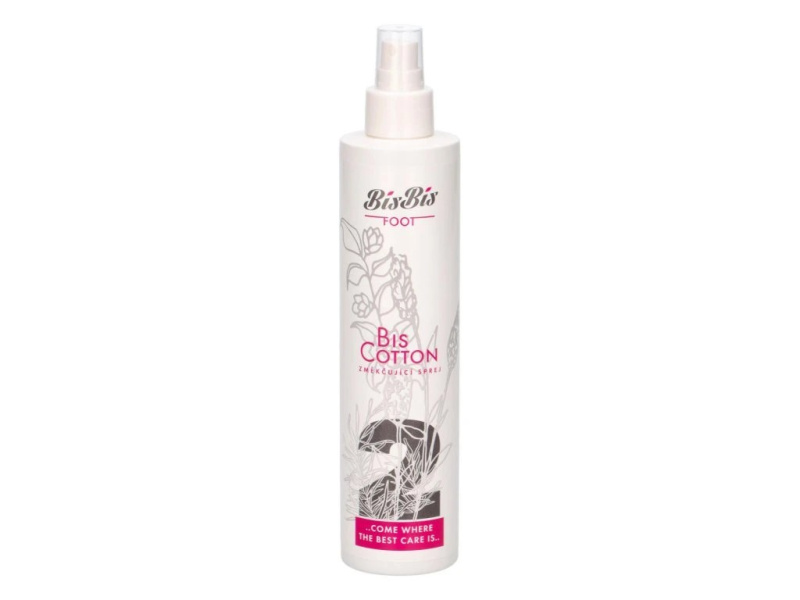 Po kúpeli Bis Bath postupujte ďalšou fázou zmäkčenia pomocou spreja Bis Cotton. Sprej použite na chodidlá, mozole, nechty a nechtové kožičky. Bis Cotton obsahuje 30% Urey , Lactil a kyselinu Hyaluronovú. Obe tieto zložky pokožku hydratujú a podporujú schopnosť prirodzenej hydratácie. Bis Cotton je vhodný pre mokrú, spa aj suchú/prístrojovú pedikúru.